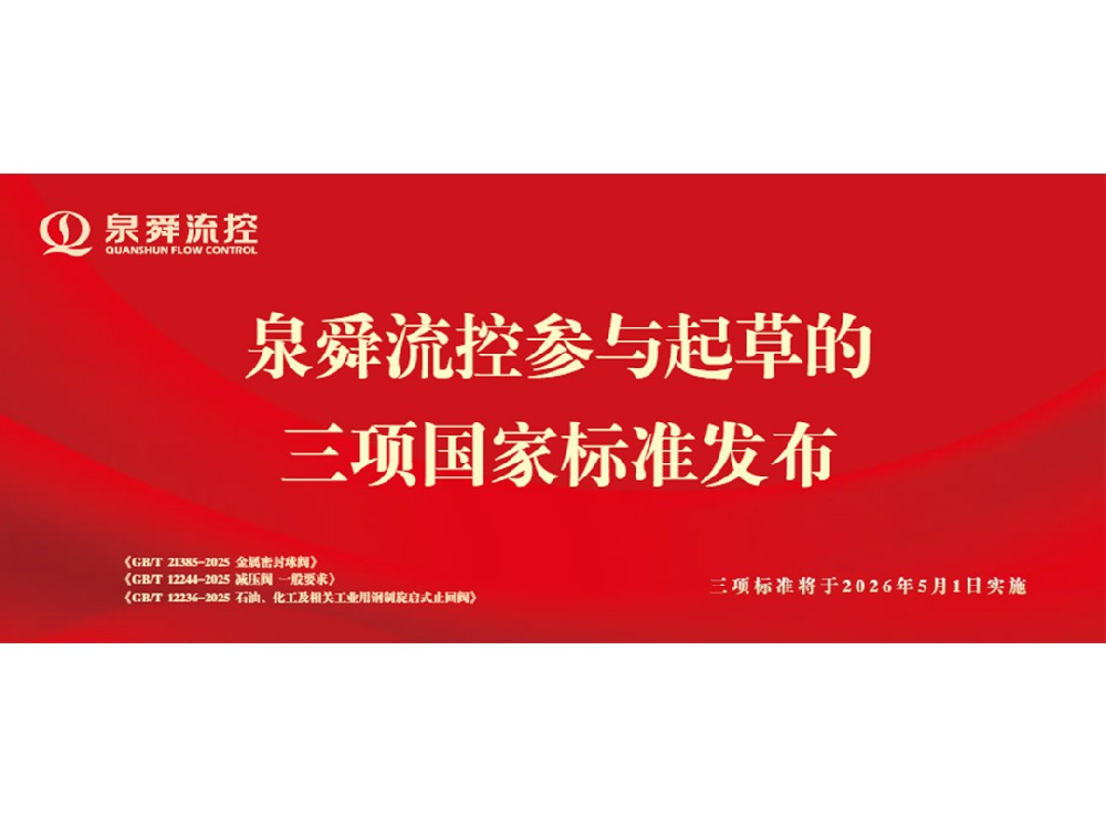 近日,全国阀门标准化技术委员会正式发布了《GB/T 21385-2025 金属密封球阀》、《GB/T 12244-2025 减压阀 一般要求》以及《GB/T 12236-2025 石油、化工及相关工业用钢制旋启式止回阀》三项国家标准。我公司作为核心起草单位之一,全程参与了这三项国家标准的研制与起草工作,标准将于2026年5月1日实施。