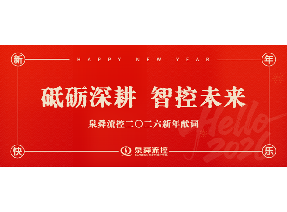 砥砺深耕 智控未来前行者,势不可挡KEEP ONWARD WITH HIGH MORALE岁序更替,华章日新。值此2026年到来之际,我谨代表河南泉舜流体控制科技有限公司,向一年来辛勤付出的全体泉舜同仁及家人,向与我们携手共进的合作伙伴,向始终关心支持公司发展的各界朋友,致以最诚挚的感谢和最美好的新年祝福!回首2025:于激流中勇